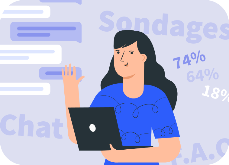 Un outil 4 en 1 avec un fil d'actualité, une FAQ juridique (code du travail + accords de votre entreprise), un chat et un outil de sondage. De quoi devenir LA plateforme préférée de vos salariés.